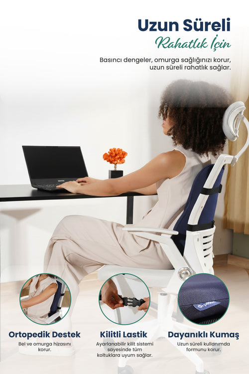 Ortopedik yapı sayesinde gün boyunca yorulmadan ve ağrısız bir oturma kalitesine ulaşıldı.