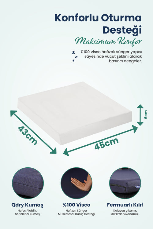 [ORTOPEDİO] Ofis ve Araç Uyumlu Kare Visco Ortopedik Oturma Minderi 44x42x6cm